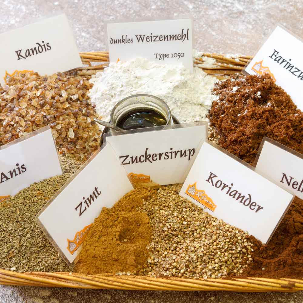 Weizenmehl, Zuckersirup, Kandiszucker, Brauner Zucker, Printengewürze, Backtriebmittel (Natriumcarbonat, Kaliumcarbonat), Kartoffelmehl