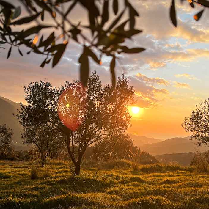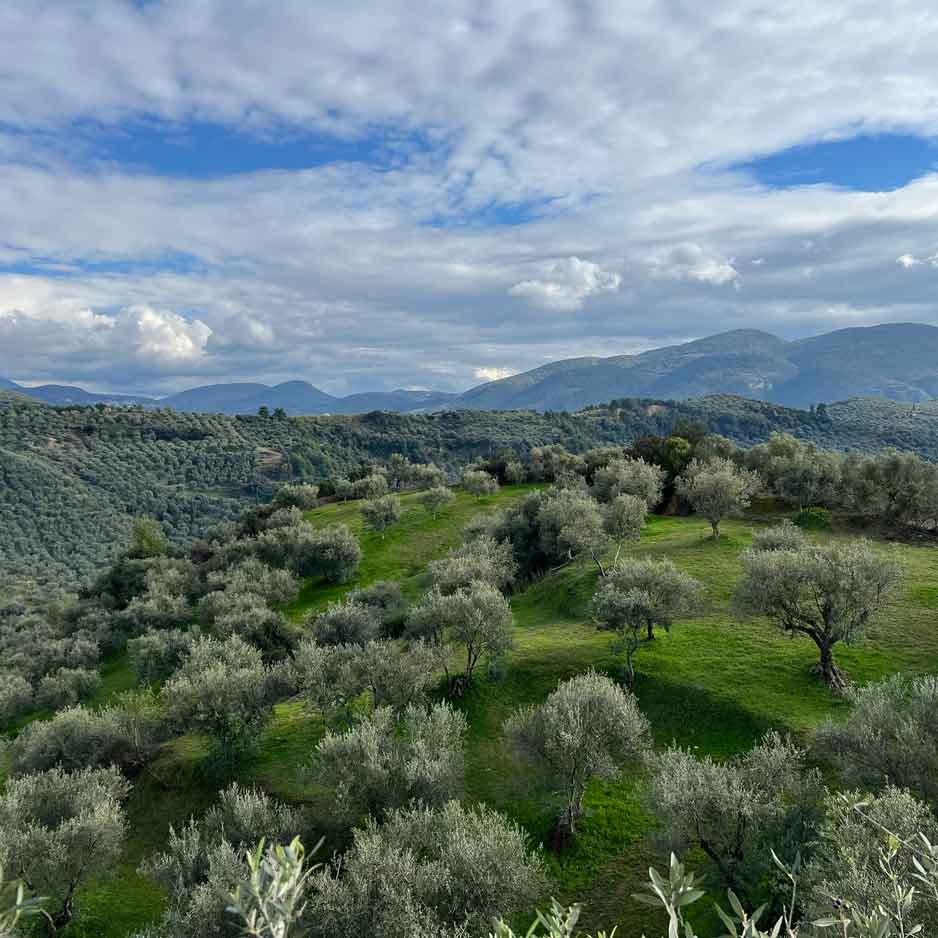 Die Olivenhaine liegen auf den Hängen des Berges Minthi, etwa 500 Meter über dem Meeresspiegel. Die steilen Terrassen, der steinige Boden, die südliche Ausrichtung und die Nähe zum Meer schaffen ein einzigartiges Mikroklima, das den Oliven ihren unverwechselbaren Charakter verleiht. Hier entstehen Früchte, die das harmonische Zusammenspiel von Natur, Klima und Handwerk widerspiegeln.