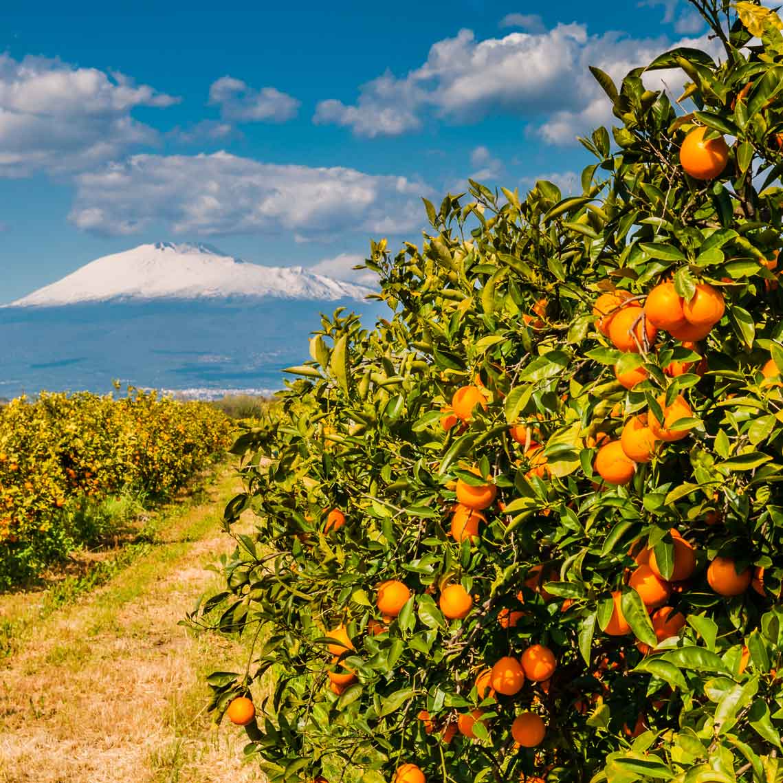 Unsere Orangen kommen direkt vom Erzeuger bei Syrakus am Fuße des Ätnas. Dank der fruchtbaren Vulkanerde entwickeln sie dort ein besonders intensives Aroma.
