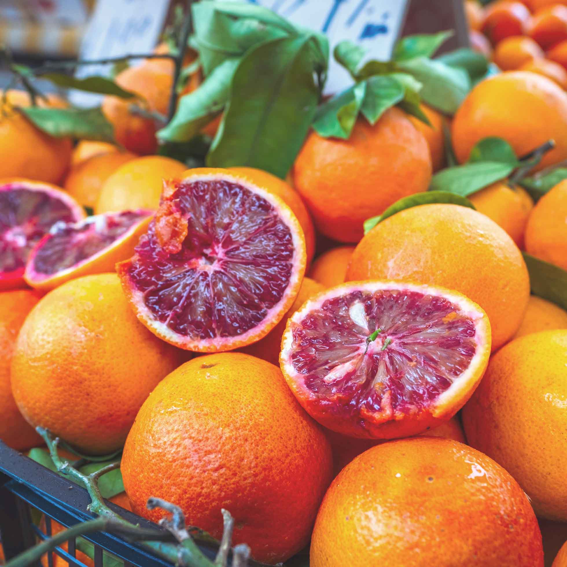 Diese Kombination sorgt dafür, dass Orangen, Mandarinen, Zitronen und Grapefruit aus Sizilien intensiver duften, kräftiger gefärbt sind und geschmacklich eine deutlichere Balance von Süße und Säure aufweisen als Früchte aus vielen anderen Regionen. Besonders die Blutorangen verdanken ihre tiefe rote Färbung und ihr charakteristisches Aroma den Anthocyanen, die sich durch die kühlen Nächte und sonnigen Tage im Winter bilden – ein Phänomen, das in dieser Ausprägung fast ausschließlich in Sizilien vorkommt.