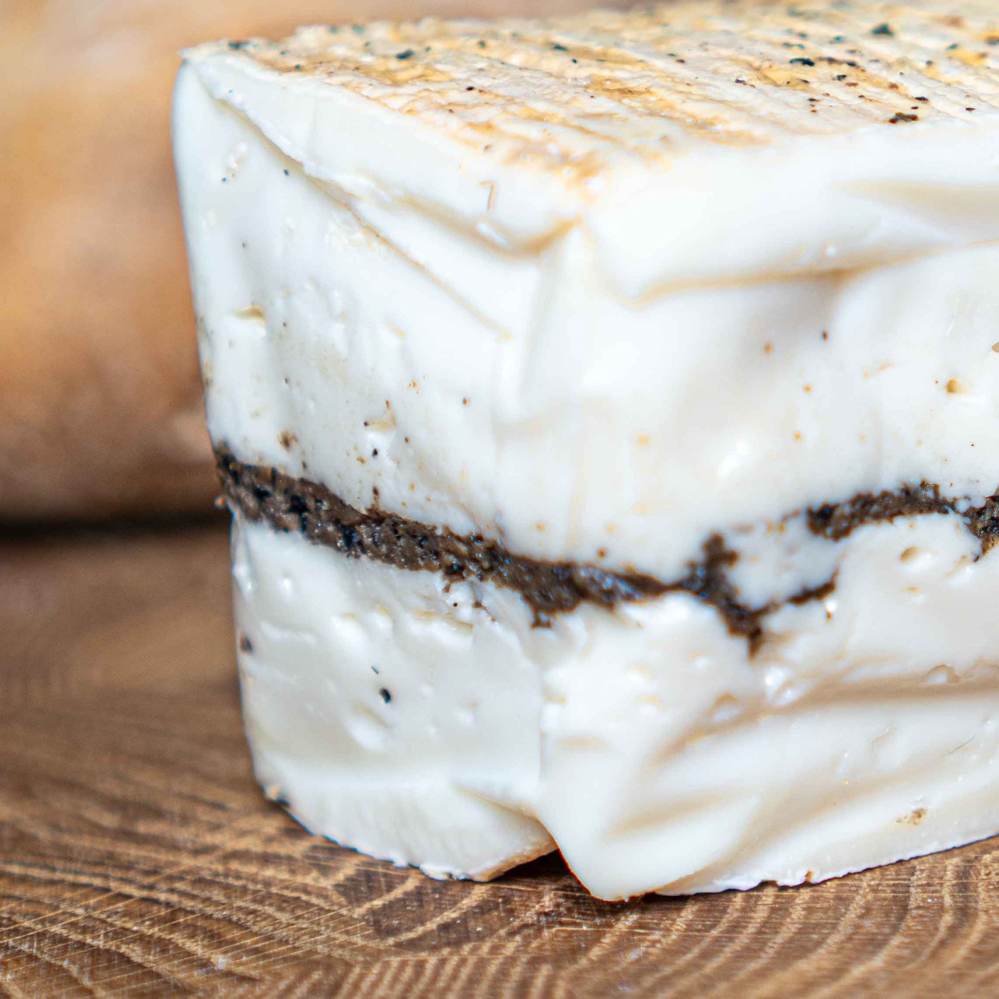 - Weichkäse mit weißer Textur und mit sichtbaren Trüffeladern.
